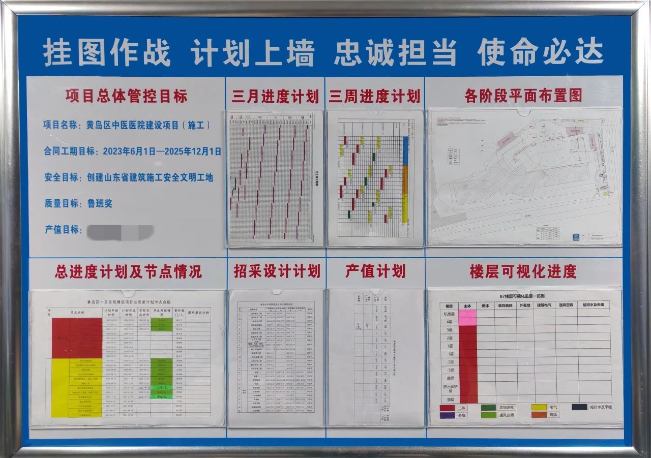 掛圖是手段,作戰(zhàn)是核心。在建項(xiàng)目全覆蓋開(kāi)展“掛圖作戰(zhàn)”,上墻“一目標(biāo)一指令一圖六計(jì)劃”,即項(xiàng)目工期、安全、質(zhì)量目標(biāo)、月度指令單、立面進(jìn)度圖、總進(jìn)度計(jì)劃、總進(jìn)度計(jì)劃節(jié)點(diǎn)臺(tái)賬、月進(jìn)度計(jì)劃、周進(jìn)度計(jì)劃、招采計(jì)劃、產(chǎn)值計(jì)劃。