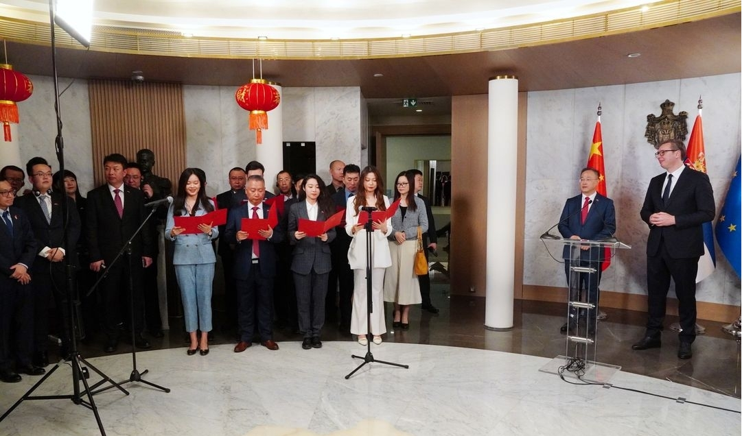 李明大使在致辭中感謝武契奇總統對中國人民的友好情誼以及對中塞關系的高度重視,表示中塞關系在兩國元首戰略引領下取得了豐碩成果,雙方要牢記兩國元首囑托,更加堅定地站在歷史正確一邊,更加用心、用力、用情推動中塞互利合作,不斷將兩國鐵桿友誼推上新高。