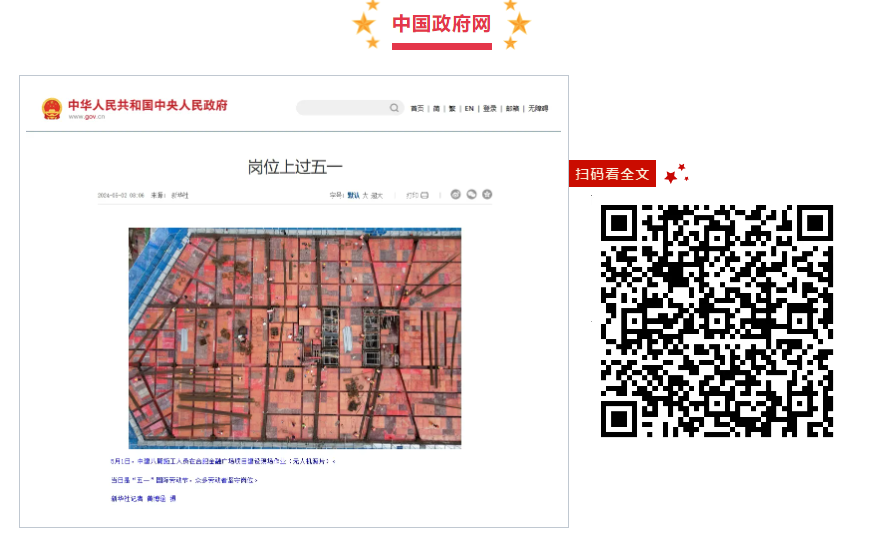 內容摘要:5月2日,中國政府網報道《崗位上過五一》,點贊中建八局合肥金融廣場項目堅守崗位保進度。該報道由新華社首發,新華網、人民網、央視網等主流媒體轉發。