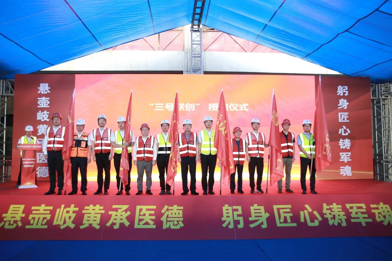 活動中,宣讀了黨建聯建和勞動競賽方案,簽訂了黨建聯建協議和競賽目標責任書,進行了“三號聯創”授旗儀式、項目廉潔文化示范點揭牌;參建單位代表進行集體宣誓,與會領導慰問了一線工友。