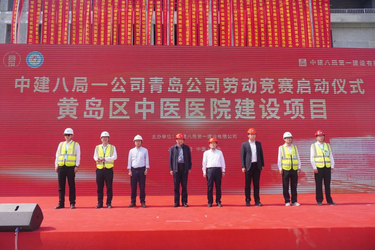 青島西海岸新區政府黨組成員、副區長趙英民,區衛生健康局黨組書記、局長韓華,區中醫醫院黨委書記盧彥敏,青科控股集團有限公司黨委書記、董事長曹軍輝,黨委副書記,總經理張偉,中建八局一公司青島公司相關負責人,以及工友代表150余人參加。