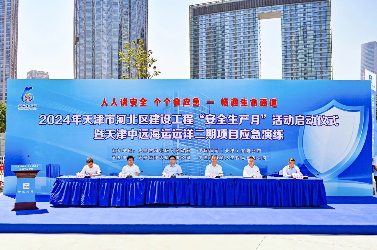為響應全國第23個“安全生產月”活動要求,6月3日,天津市河北區建設工程“安全生產月”啟動儀式暨項目應急演練活動在中建八一天津中遠海運遠洋二期項目舉行。