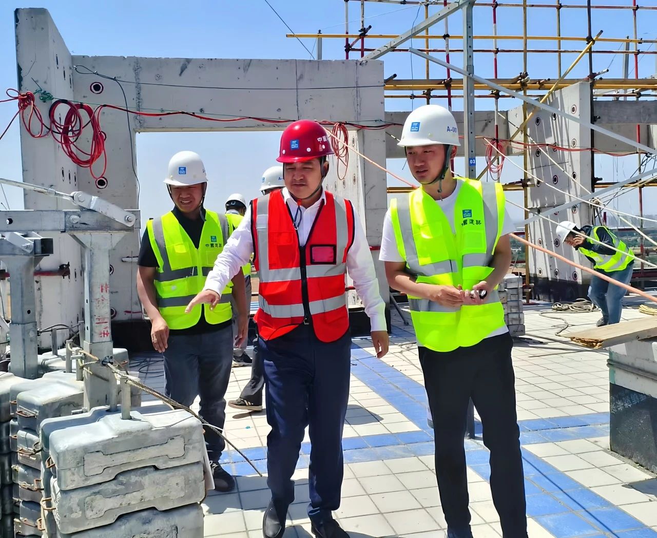 在山東省實驗中學鵲華校區高中項目,牛化憲詳細了解工程進度、安全生產情況,實地察看現場安全管理、施工質量和進度等。他強調,要嚴格落實公司安全生產管理制度,圍繞高處作業、機械管理、臨邊防護、消防管理等方面,持續強化隱患排查治理力度;要切實做好高溫天氣防暑降溫工作,確保項目安全度夏;要以項目交付時間為主線,合理部署、科學組織工序穿插,深入貫徹“適時生產”理念,確保項目高效建造、完美履約;要加強質量管理,落實全員履職,強化過程管控,確保一次成優,打造高質量精品工程。