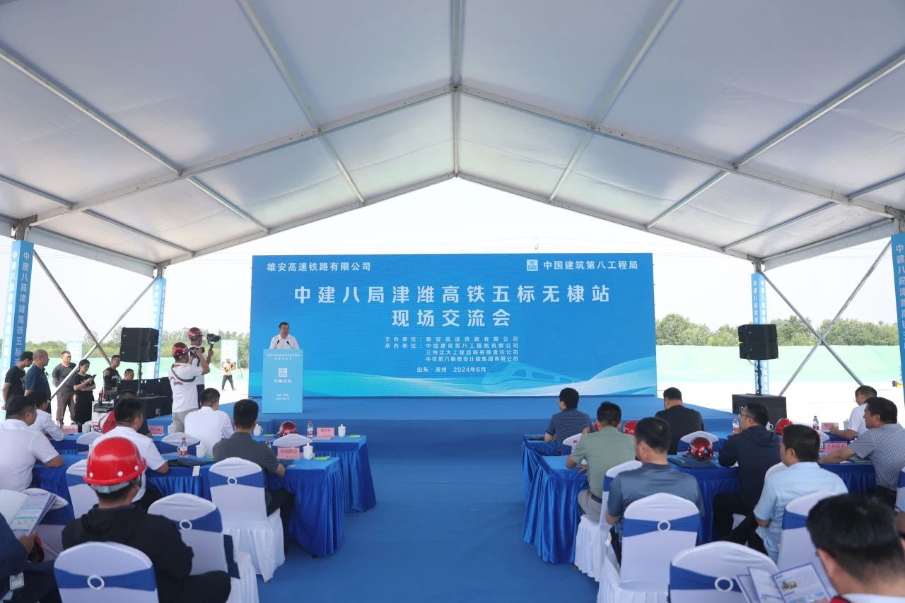 6月13日,由雄安高速鐵路有限公司主辦、中建八局等單位承辦的路基觀摩現(xiàn)場交流會走進(jìn)津?yàn)H高鐵站前五標(biāo)項(xiàng)目。雄安高速鐵路有限公司相關(guān)領(lǐng)導(dǎo),中建八局副總經(jīng)理劉書冬,基礎(chǔ)設(shè)施事業(yè)部執(zhí)行總經(jīng)理岳松、副總經(jīng)理梁田錄,中建八局山東分局副局長陳立全,中建八局一公司副總經(jīng)理,基礎(chǔ)設(shè)施公司黨總支書記、總經(jīng)理王立方,局內(nèi)9家二級、三級單位、鐵路項(xiàng)目代表,以及津?yàn)H高鐵、濰宿高鐵施工、監(jiān)理、設(shè)計(jì)20余家單位代表,共計(jì)150余人參加。