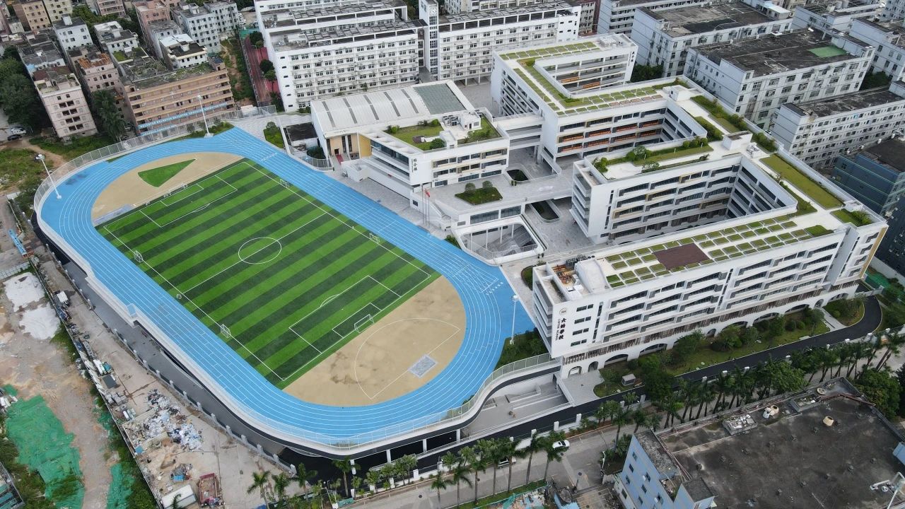 項目位于深圳市龍崗區,總建筑面積5.88萬平方米,新建建筑面積3.57萬平方米,涵蓋教學樓、辦公樓、運動場、宿舍等功能布局,建成后將新增1820個學位,有效緩解片區學位壓力。