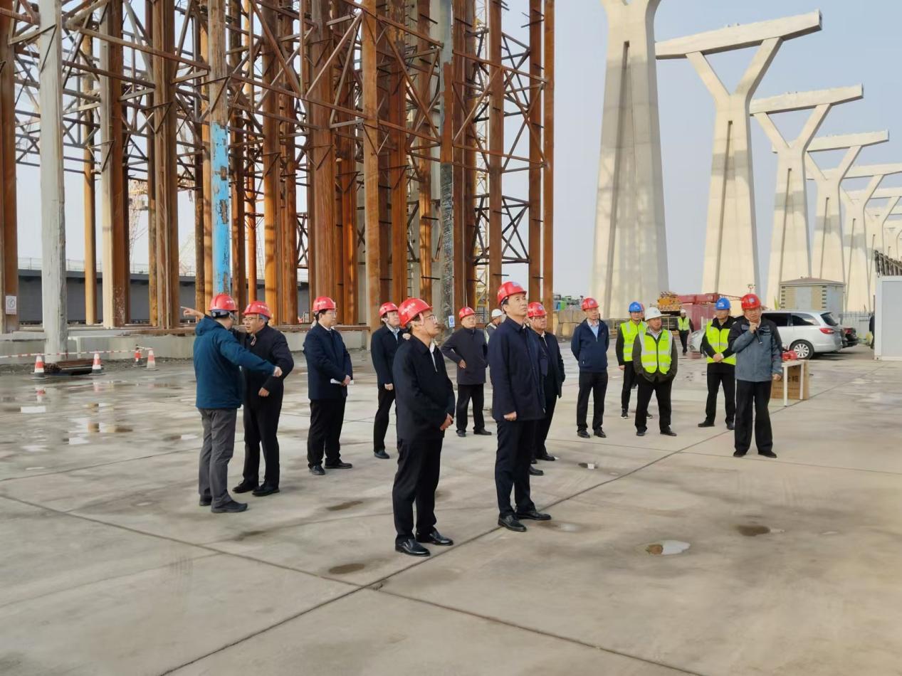 首先項(xiàng)目負(fù)責(zé)人介紹了該項(xiàng)目和套爾河特大橋總體概況、進(jìn)展情況以及亮點(diǎn)做法,隨后檢查組一行乘電梯到達(dá)橋面,察看項(xiàng)目建設(shè)進(jìn)展情況。