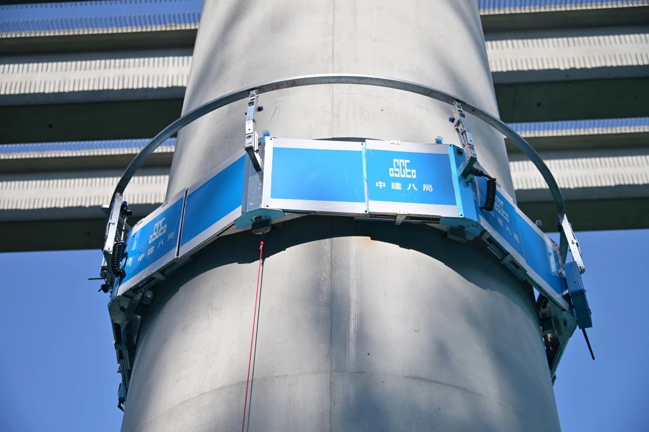 RC智柱俠由折疊式桁架平臺檢測系統、養護系統及數據收集分析系統組成,可快速完成墩柱任一斷面鋼筋保護層、鋼筋間距檢測,同時進行及時養護,實現“高精度、全方位”智能化養護-檢測作業,檢測效率較傳統方式提升3倍以上,目前在京臺高速齊河至濟南段改擴建項目應用。