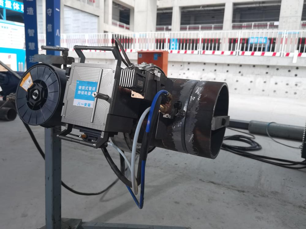 便攜式管道焊接機器人由移動小車、集成控制裝置及焊機三部分組成,移動小車吸附在鋼管上,帶動焊槍沿焊縫方向行走,通過集成控制和焊接編程,實現對管道的自動焊接,為管道焊接作業帶來全新解決方案,實現了管道的360度全位置高效焊接,大幅提高焊接質量和效率。目前在中國中醫科學院廣安門醫院濟南醫院、黃河體育中心專業足球場等多個項目應用。