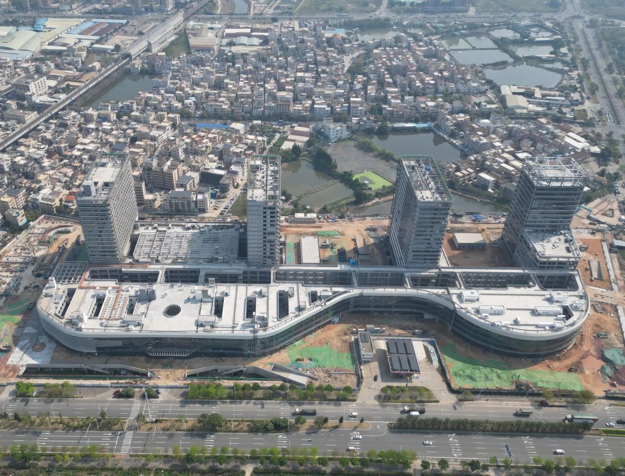得益于項目安全管控的有力保障,現(xiàn)場生產(chǎn)平穩(wěn)高效推進,6個月完成3000余根灌注樁施工、8個月完成70萬方土方開挖及基坑支護、9個月完成35萬平方米主體施工、提前30天實現(xiàn)主體結(jié)構(gòu)封頂,項目當(dāng)前處于機電安裝與裝飾裝修階段,預(yù)計2026年竣工。