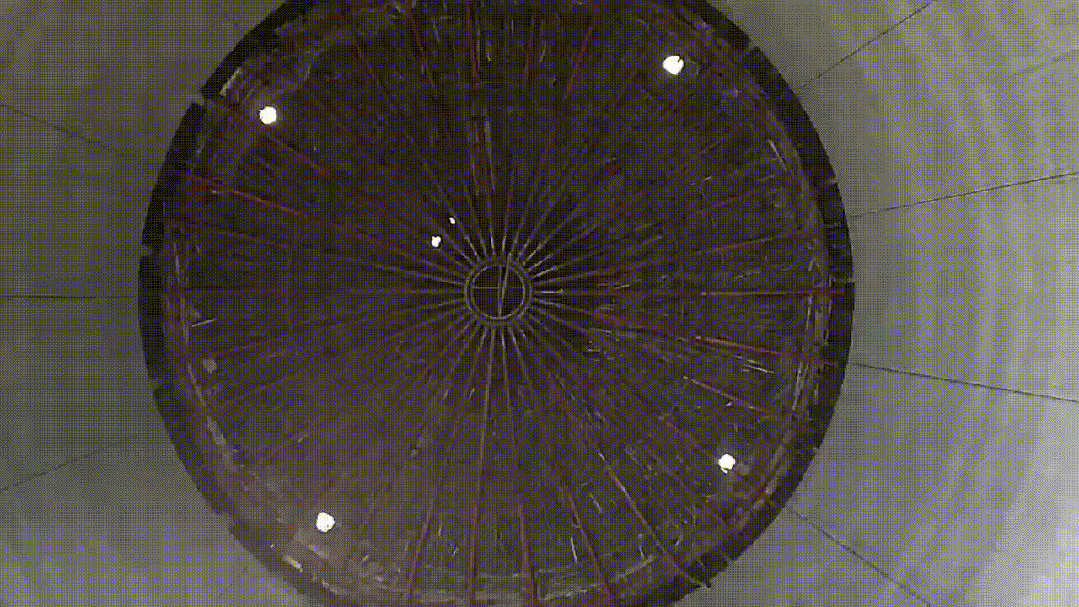 為保證產品性能達到預期,中建八局一公司在煙臺某項目開展實地測試,在倉頂傘桁架部署30個監測節點,累計監測位移、拉力等數據3萬條。經驗證,系統運行過程中傘桁架吊點間拉力同步偏差控制在1.5千牛以內,下降高度同步相鄰點位高差控制在20毫米以內,模擬電動葫蘆失效等預警場景糾偏程序均自動觸發,測試結果達到預期各項目標。
