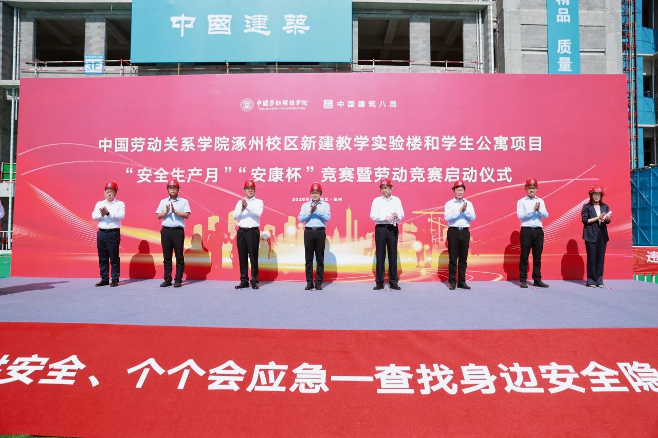 6月17日,中國勞動關系學院涿州校區新建教學實驗樓和學生公寓項目舉行2025年“安全生產月”“安康杯”競賽暨勞動競賽啟動儀式。