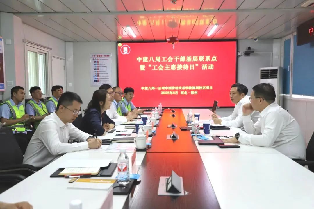 活動結束后,方思忠一行來到項目部,開展中建八局工會干部基層聯系點暨“工會主席接待日”活動,了解一線建設者需求,傳遞組織關懷,提振團隊士氣,并希望全體建設者深刻認識項目建設的全局高度和戰略意義,切實增強責任擔當; 要精心組織、科學策劃施工全過程,確保高質量完成各項任務,實現項目完美履約;要及時匯報項目動態及進展情況,并強化問題反饋與解決機制,確保各類風險隱患得到及時有效處置。