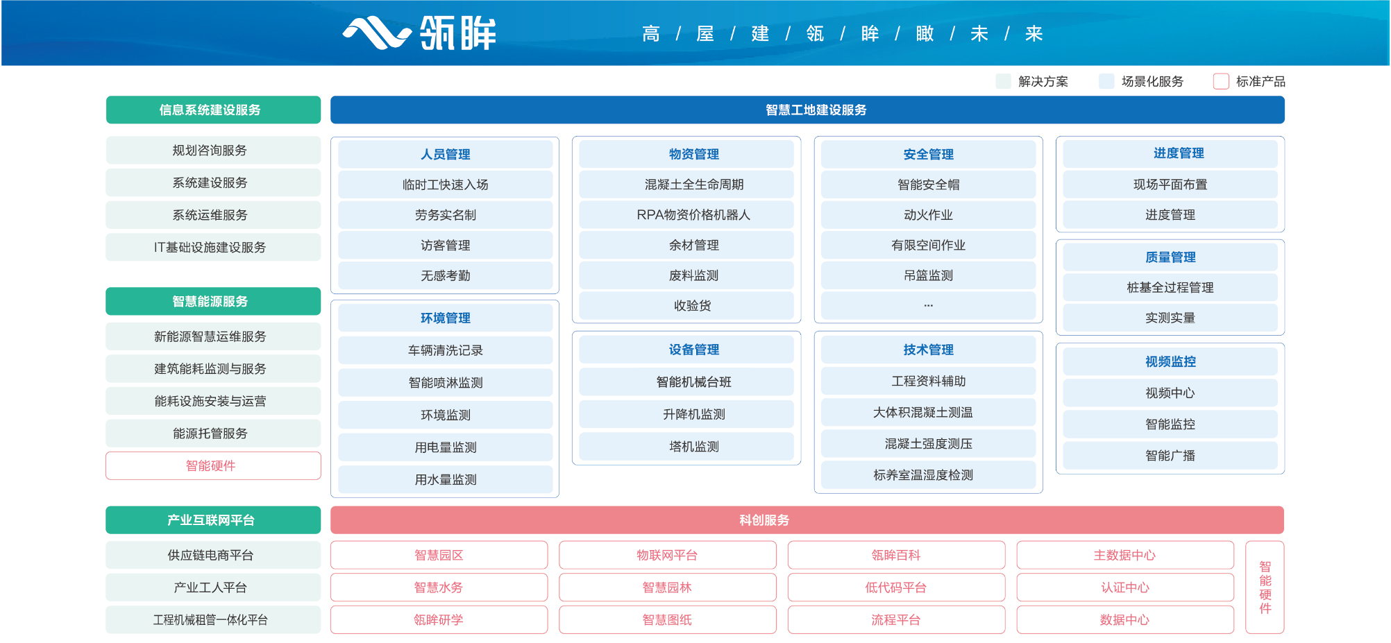 數科公司聚焦建筑行業數字化轉型需求,將信息技術與工程建造深度融合,打造自有品牌“瓴眸”系列產品,包含企業數字化管理、智能建造、智慧城市、建筑科技創新產業等多個序列,在建筑大數據分析、AI 智能監測、低碳建造數字化方案等領域打造核心優勢,形成 “研發→應用→產業” 完整生態鏈,為建筑行業向綠色化、工業化智慧化轉型發展注入新動能。