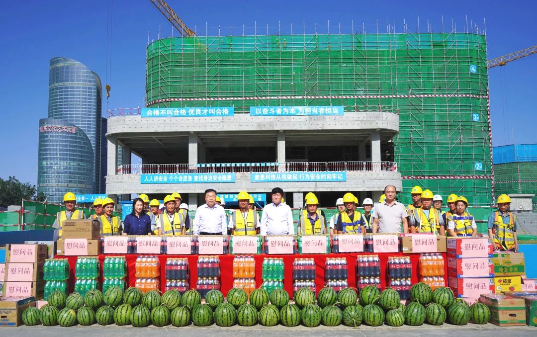 6月4日,中建集團工會“送清涼”慰問活動走進中建八一承建的濟南西客站片區中軸線地塊B-2、B-3項目,為夏日奮戰建設一線的職工及廣大工友送去“清涼”。