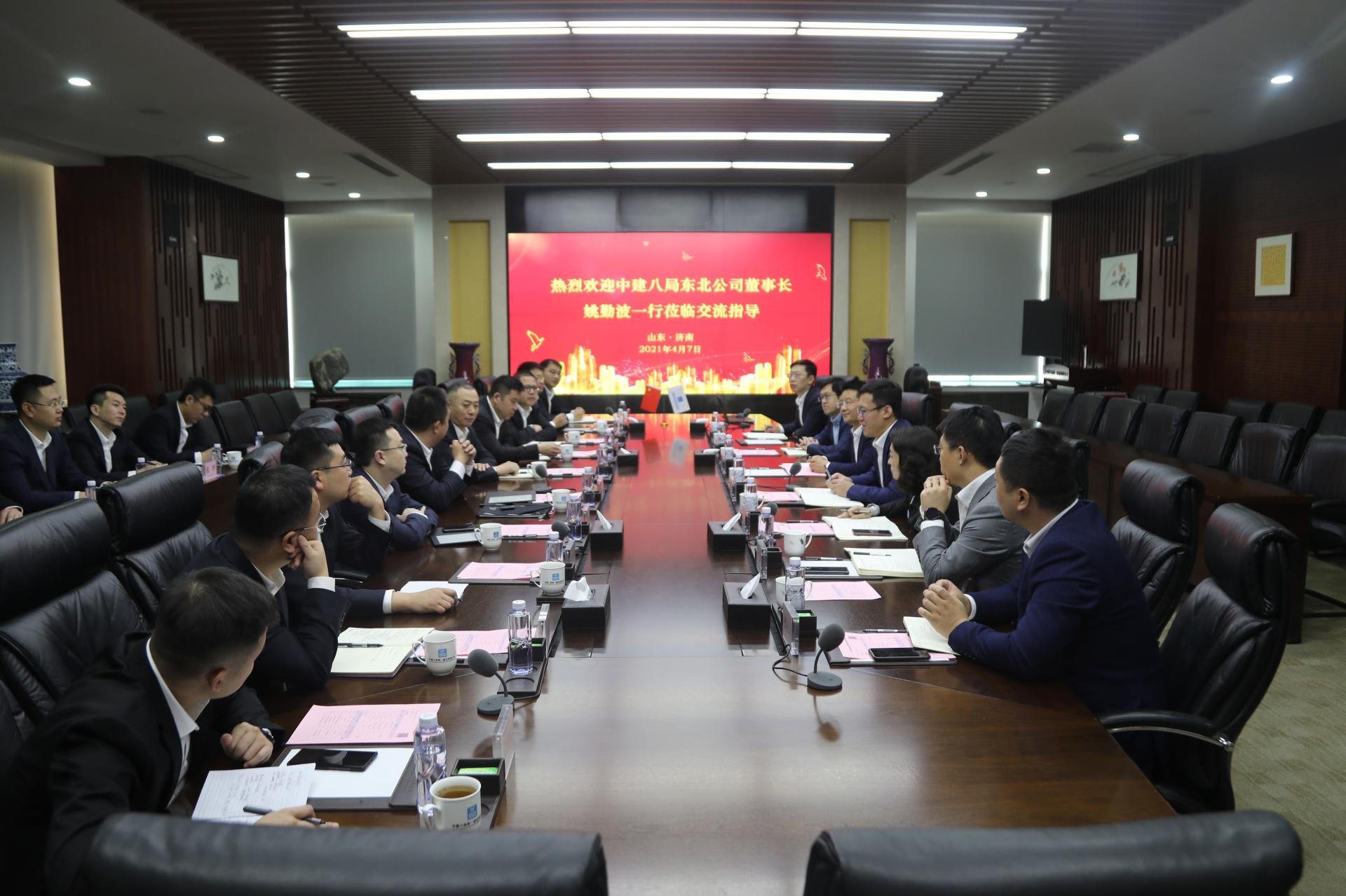 4月7日,中建八局東北公司黨委書記、董事長姚勤波帶隊,到訪中建八局一公司開展工作交流。