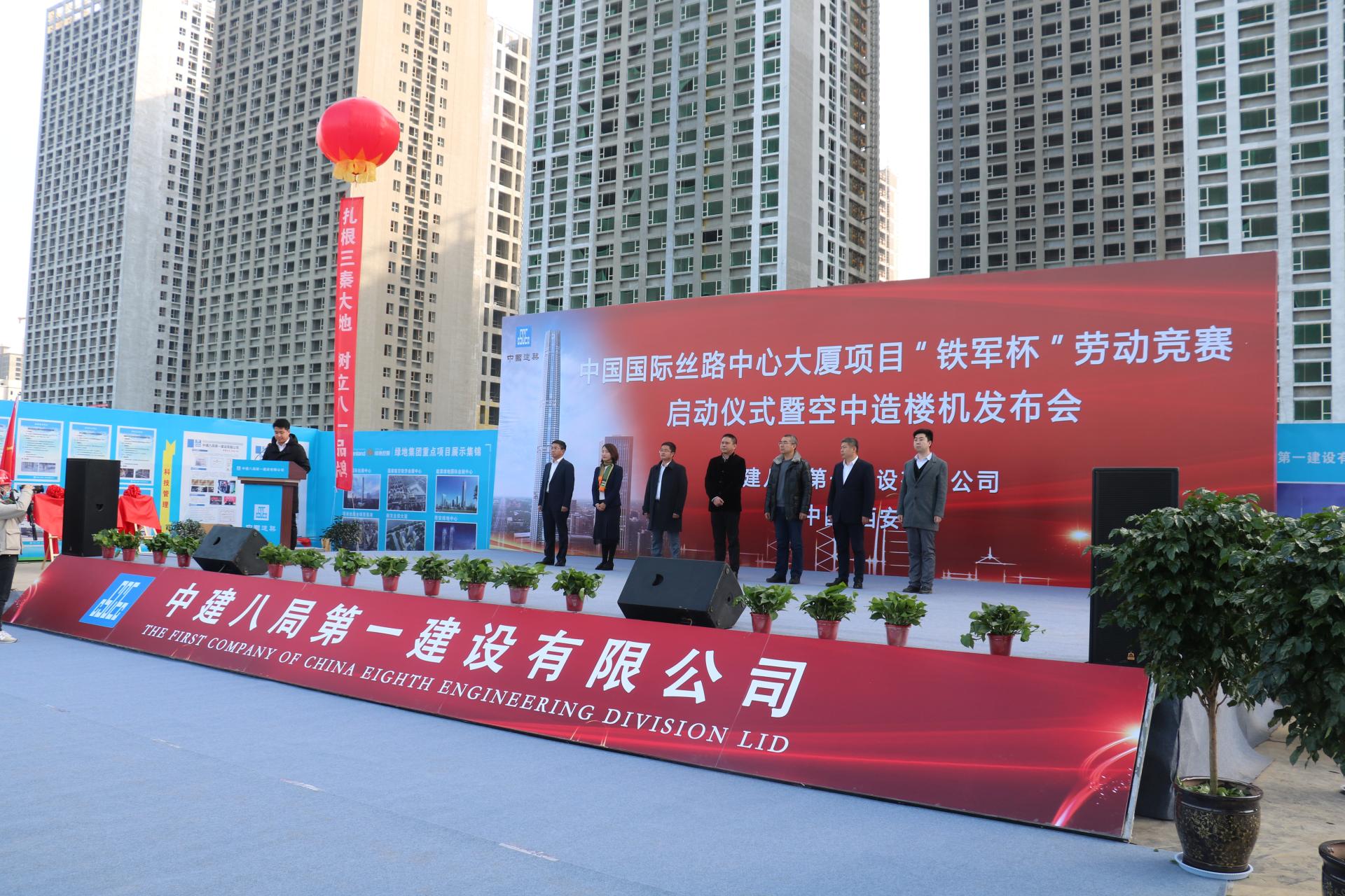 中國國際絲路中心大廈項目舉辦“鐵軍杯”勞動競賽啟動儀式暨空中造樓機發布會