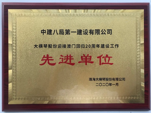 2020年1月7日在珠海大橫琴股份有限公司2019年迎澳回歸20周年建設(shè)工作表彰大會上,珠海橫琴天沐河橋梁裝飾及附屬改造工程項目榮獲“先進單位”,項目經(jīng)理王正濤榮獲“先進個人”。