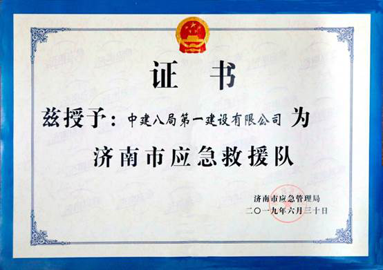 6月30日,濟南市政府舉辦了大應急戰略合作啟動儀式暨應急救援力量裝備展示活動,公司作為唯一一家建筑企業受邀參加活動,與濟南市應急管理局簽訂了應急管理戰略合作協議書,并被授予“濟南市應急救援隊”稱號。