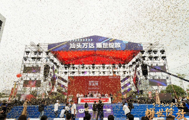 5月25日,汕頭萬達廣場盛大開業。 汕頭市市委常委、副市長李宇及政府部門相關領導,萬達商業管理集團副總裁梁飛建及萬達集團相關領導、華南公司黨總支書記高亮及華南公司各部門、項目部全體同事和社會各界人士共同見證這一時刻。