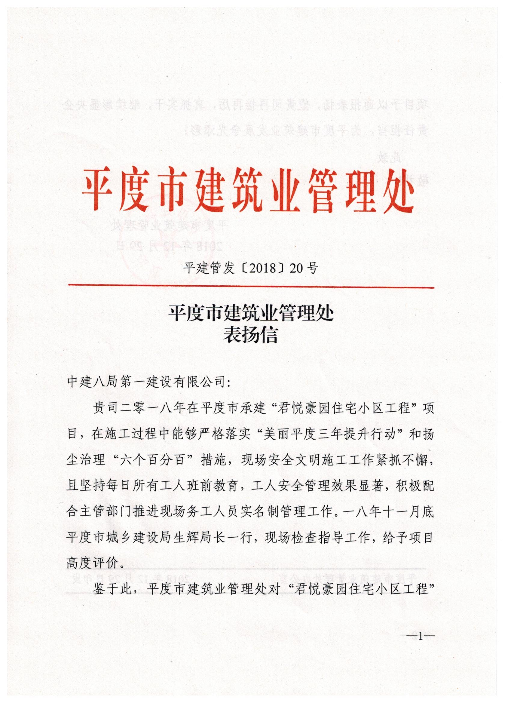 近日,青島公司平度君悅豪園住宅小區(qū)項目喜獲平度市城鄉(xiāng)建設(shè)局表揚信,信中著重贊揚我司項目上開展的安全文明施工各項具體工作,并對工程后續(xù)建設(shè)寄予厚望。