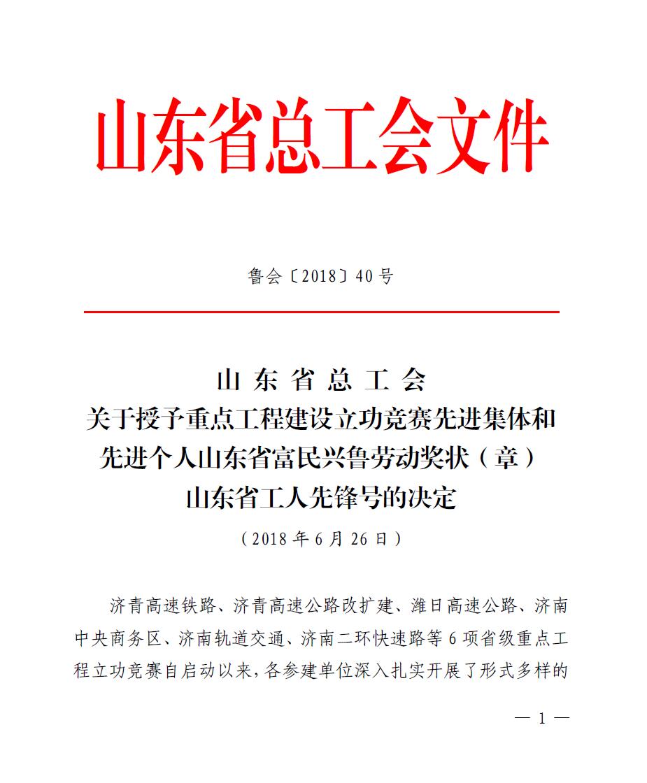 近日,山東省總工會下發(fā)文件,表彰了在山東省6項省級重點工程立功競賽活動中取得優(yōu)異成績的先進集體與先進個人,公司濰日高速項目及京滬高速濟南連接線項目獲得“山東省工人先鋒號”榮譽。