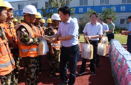 2018年6月25日下午,濟南市總工會黨組書記、常務副主席傅金峰,濟南市總工會副主席蒲玉全,局工會副主席王為兵一行來到港城二期項目部,對項目部工會工作開展情況進行調研,并對項目管理人員及一線工人進行“送清涼”慰問活動。
