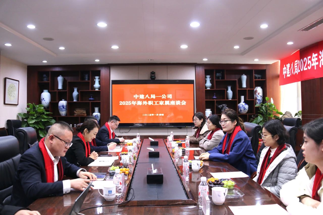 1月19日,中建八局一公司舉辦2025年海外職工家屬座談會,邀請海外職工家屬共敘心聲,為海外職工和牽掛著他們的家人送去新春的慰問與祝福。
