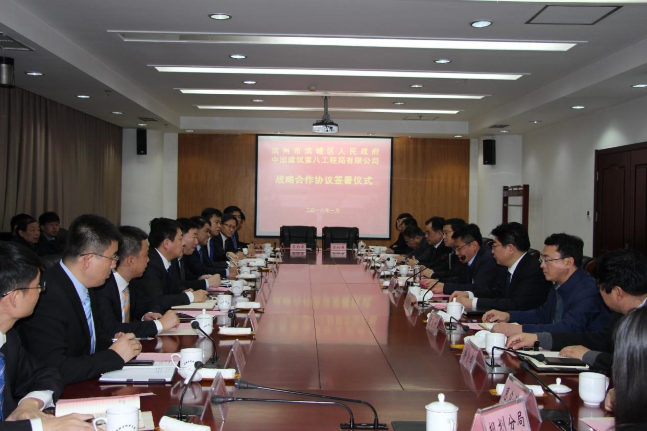 1月22日,中建八局與濱州市濱城區人民政府戰略合作協議簽約儀式舉行。