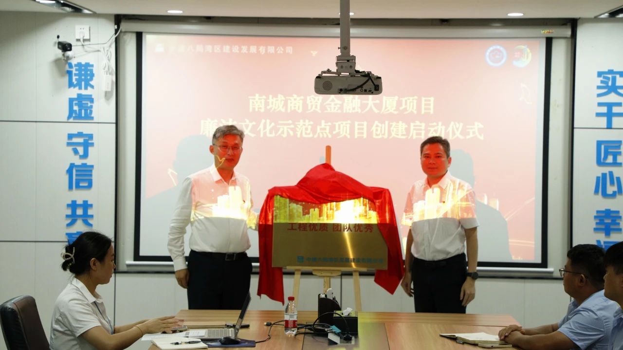10月16日,中建八局一公司與東莞市南城街道在南城商貿金融大廈項目舉辦廉潔文化示范點啟動儀式。 南城街道紀工委副書記李凌,街道紀檢監察辦一級監察官袁建洪,中建八局一公司紀委書記徐紅志,華南公司相關負責人參加活動。