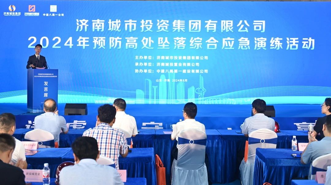預防高處墜落,暢通生命通道。 8月28日,濟南城市投資集團有限公司2024年預防高處墜落綜合應急演練活動在中建八一承建的雪山二期首期出讓B-9地塊工程舉行。