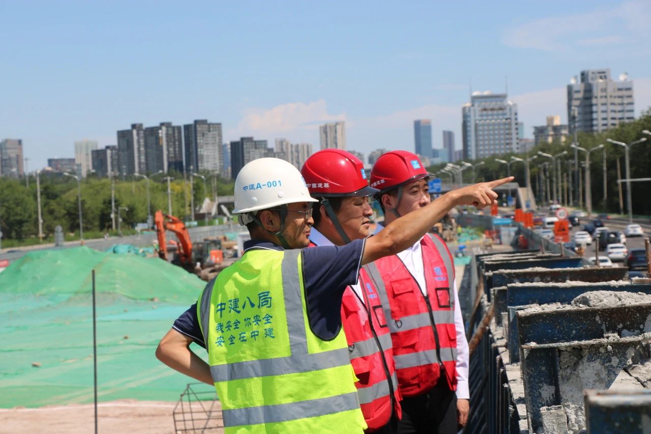 6月25日,中建八局一公司黨委副書記、總經理牛化憲到北京姚家園北街道路工程1#標段開展“四不兩直”安全帶班檢查。