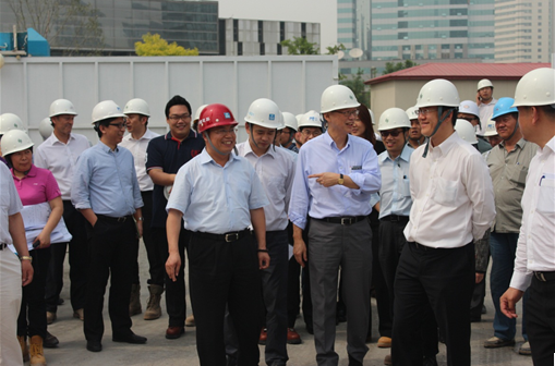 5月21日,香港恒隆集團董事、總經理陳南祿、董事呂奕亮等蒞臨天津恒隆廣場項目視察工作。在公司董事長李永明,副總經濟師王桂栓及項目經理汪黃東陪同下,陳總深入施工現場,詳細詢問了施工安全、質量及施工進度情況。陳總對項目的標準化管理、安全文明施工以及施工質量、進度予以了肯定,并對下一步的建設提出了期望與要求。