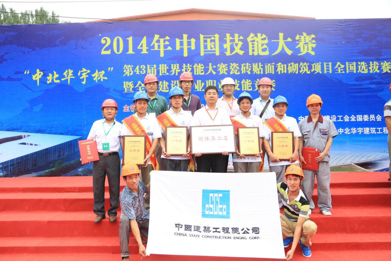 7月22日,2014年中國技能大賽――“中北華宇杯”第43屆世界技能大賽瓷磚貼面和砌筑項目全國選拔賽暨全國建設(shè)行業(yè)職業(yè)技能競賽在北京順義舉辦。公司選派的參賽選手劉學(xué)江憑借精湛的技藝,以第二名的成績榮獲該項目的一等獎,并協(xié)助中建代表隊以優(yōu)異成績獲得團體第二名。