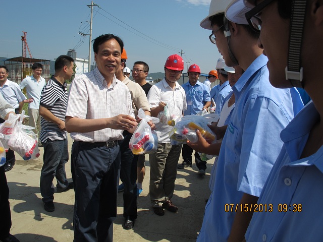 連日來,湖州持續高溫,7月15日上午,湖州市委書記馬以一行蒞臨湖州體育場項目部,對在高溫天氣下工作的人員進行慰問。
