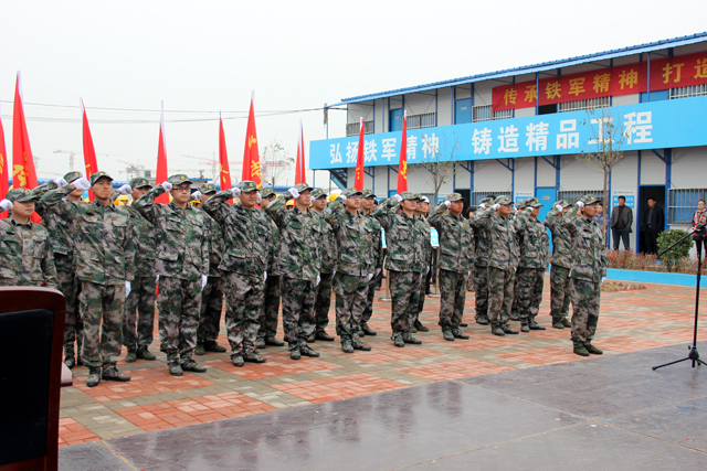 在儀式上,與會領導還分別為該項目 “黨員先鋒號”、“工人先鋒號”、“青年文明號”授旗,并為準軍事化管理、創“雙優”項目揭牌。