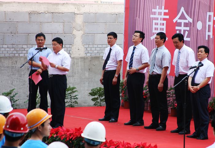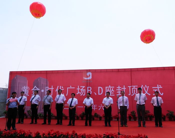 6月17日,黃金時代廣場B、D樓工程隆重舉行封頂儀式。山東黃金集團有限公司副董事長孫建設,山東黃金集團有限公司副總經理、地產旅游集團公司董事長武玉江,山東黃金地產旅游集團公司副總經理藏文寧,公司總經理李永明以及工程監理、設計等相關各方領導出席封頂儀式。