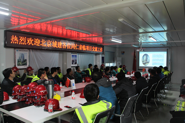 北京城建同仁一行先與項目部進行了座談交流,隨后現(xiàn)場參觀。麗澤SOHO項目總工姬祥就項目的建設(shè)情況、現(xiàn)場標(biāo)準(zhǔn)化管理、安全文明施工、項目BIM應(yīng)用及技術(shù)質(zhì)量管理向交流團進行了深入介紹。交流會結(jié)束后,交流團重點考察了現(xiàn)場施工情況,并對部分工程的技術(shù)優(yōu)化進行了交流探討。