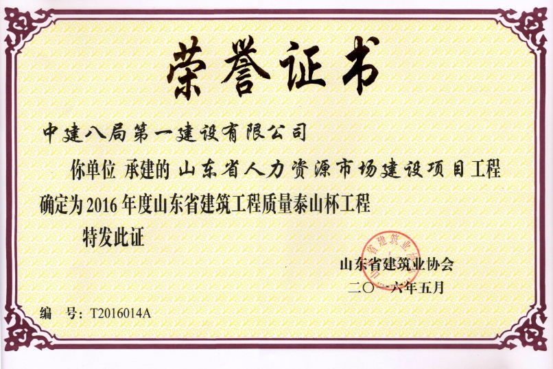 同一年度!同一批次!同一分公司!公司兩工程同時榮獲2016年度第一批山東省建筑工程質量“泰山杯”獎