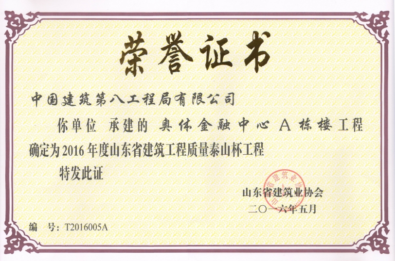 近日,再次傳來喜報――人力資源市場項目、奧體金融中心A棟兩個工程同時榮獲2016年度山東省建筑工程質量“泰山杯”獎。