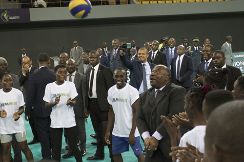 典禮上,體育部部長Mathias Otounga Ossibadjouo在賀詞中表達了對中建集團的真誠贊揚,對中建全體管理人員在如此緊張的工期內實現的完美履約表示敬佩與感謝。施洪剛代表建設單位發表賀詞,對加蓬政府及人民對體育館的支持表達了感謝之情,同時希望能與加蓬共和國繼續合作,繼續與加蓬政府與人民一道,共創加蓬共和國的美好明天。祈福儀式之后,比賽場館內場進行了精彩紛呈的表演。