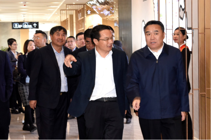 董文祥向山東高速集團黨委書記、董事長鄒慶忠介紹安丘服務區情況