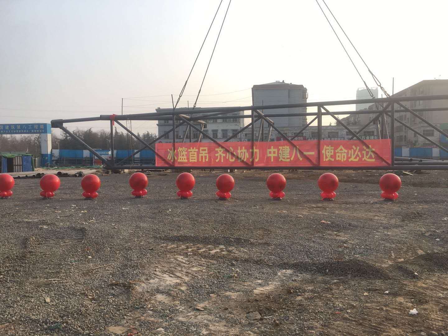 公司承建萬達冰籃球館項目順利完成新年“第一吊”