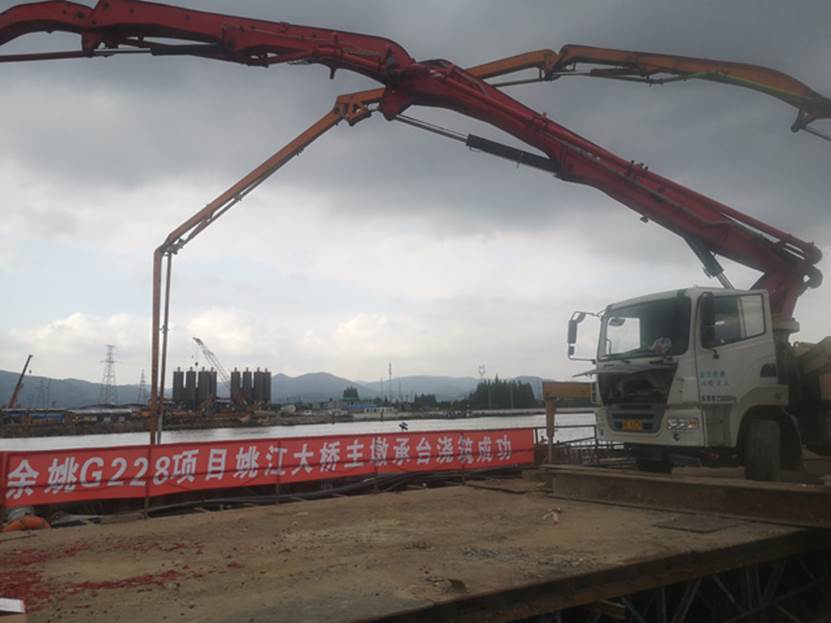 公司首個深水大體積混凝土承臺在余姚G228項目順利澆筑