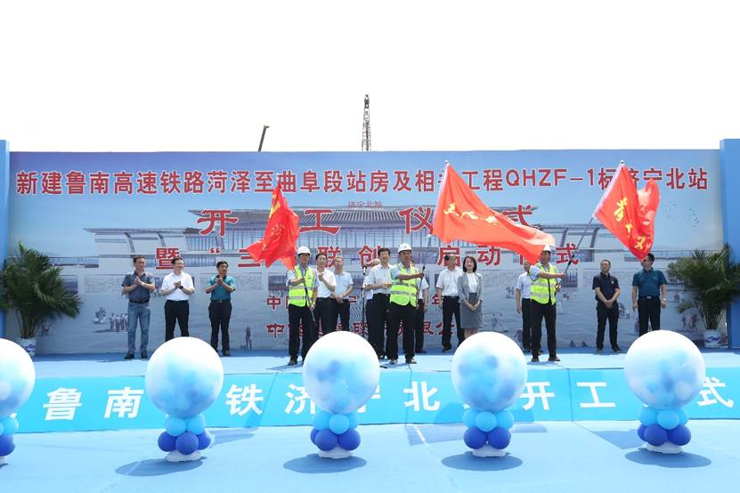 6月29日,公司魯南高鐵濟寧北站項目舉行開工儀式暨“三號聯創”啟動大會,拉開了魯南高鐵西線(菏澤至曲阜段)高鐵站房大干快上的序幕。