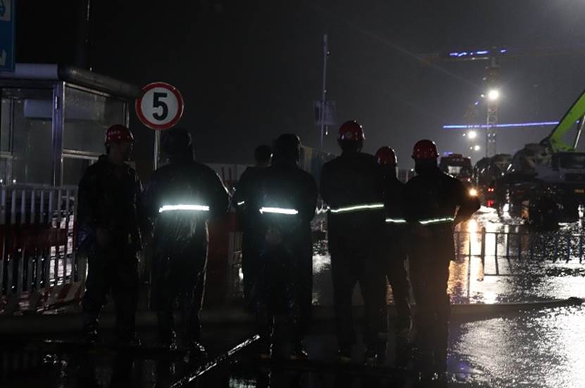 8月23日晚,項目管理人員冒著大雨巡視現場