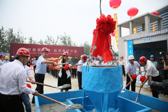 隨后,各位嘉賓共同將混凝土鏟入第一吊的料斗,標志著CAR研(山東國際汽車中心)項目科創大廈主體順利封頂。
