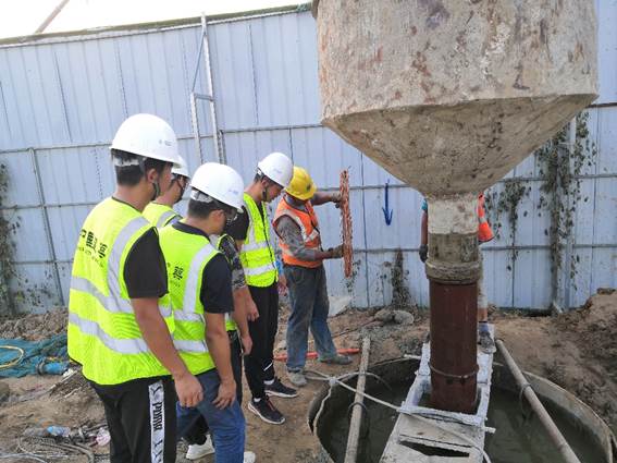 入夏以來,項目成員不畏酷暑,臨建搭設通過大家不懈努力最終落成。項目成員從第二次推進會以來,以大干快上的信念砥礪前行。面對地質穩定性差、適宜性差的地質條件,項目人員集思廣益、部門之間相互協調,共同為樁基施工奠定基礎,保障了首樁灌注圓滿完成。