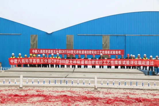此前,公司二標段五分部借助先進底座板施工工藝和自密實混凝土灌注工藝,在首個CRTSlll型板式無砟軌道工藝性揭板試驗中7次成功,打破中國鐵道科學研究院揭板試驗記錄,為無砟軌道施工奠定良好基礎。