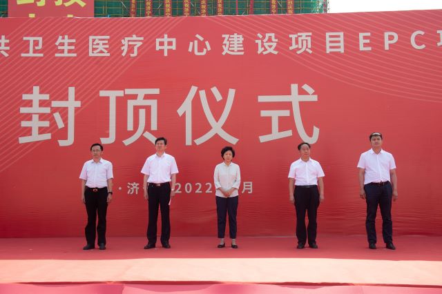 2022年5月29日上午,濟寧市公共衛生醫療中心項目舉行封頂儀式,濟寧市衛健委黨委書記、主任魯先靈,濟寧市任城區副區長孔繁華,濟寧市公共衛生醫療中心黨委書記侯春生,濟寧市發改委二級調研員袁文霞,市都市區一體化指揮部四級調研員孫德化,濟寧市第一人民醫院黨委副書記、院長鐘海濤,濟寧衛校黨委書記、校長駱榮暉、濟寧市中醫醫院院長王祥生,中建八局第一建設有限公司魯南公司經理李輝,山東班锘工程項目管理有限公司總經理張書明等出席本次封頂儀式。