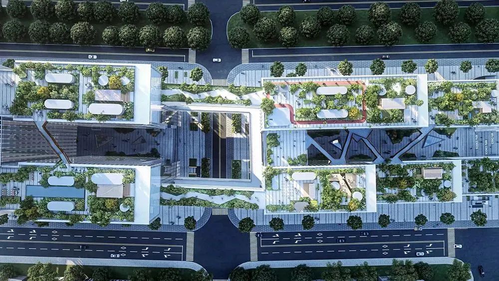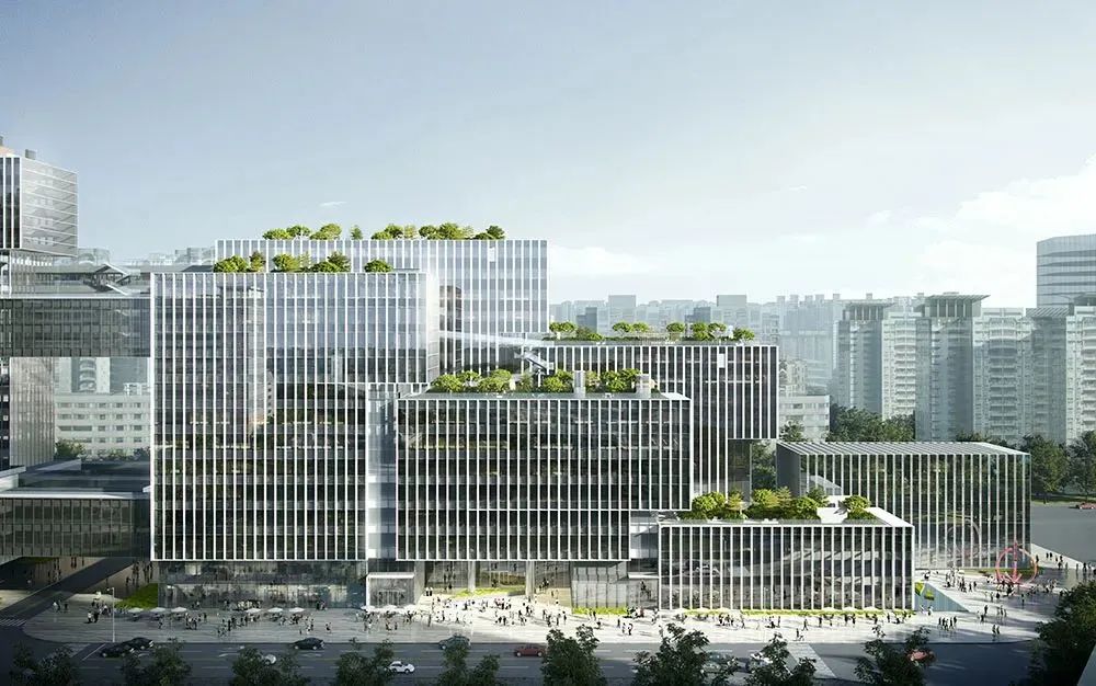 項目由國際頂尖建筑師事務所領銜設計,建筑形體由兩組盒子堆疊而成,盒子呈階梯狀向深圳河方向疊落,形成不同高度的屋頂公共空間,以“屋頂上的科學家”為設計理念打造8個不同主題的屋頂花園,形成新一代人居化科研示范空間。